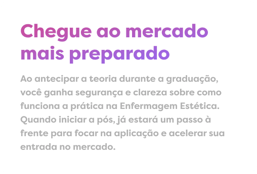 O Aperfeiçoamento em Enfermagem Estética foi desenvolvido para universitários que querem se preparar antes da formatura. Você tem acesso ao conteúdo teórico da pós-graduação de forma online e flexível.