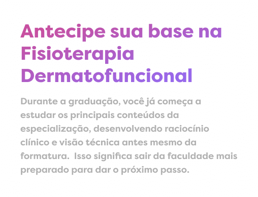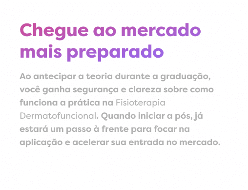Não é preciso esperar o fim da graduação para dar os primeiros passos na Fisioterapia Dermatofuncional. Com o Aperfeiçoamento, você antecipa conteúdos da pós-graduação, consolida segurança técnica e se prepara para atuar em procedimentos estéticos com base científica e domínio das boas práticas clínicas.