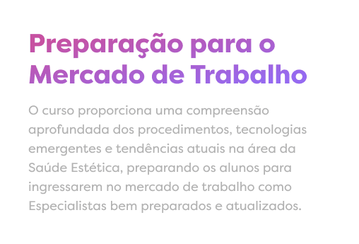 O Aperfeiçoamento em Saúde Estética foi desenvolvido para universitários que querem se preparar antes da formatura. Você tem acesso ao conteúdo teórico da pós-graduação de forma online e flexível.
