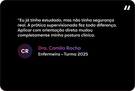 Somos referência nacional em Saúde Estética, com mais de 70 mil profissionais da saúde formados. Nossos cursos combinam prática intensiva, mentoria com profissionais reconhecidos do mercado de injetáveis e uma metodologia validada por resultados concretos.