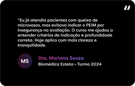 O Curso de Microvasos PEIM é uma capacitação prática voltada para profissionais que desejam aplicar a técnica com mais segurança, critério clínico e confiança.