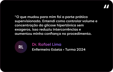 Somos referência nacional em Saúde Estética, com mais de 70 mil profissionais da saúde formados. Nossos cursos combinam prática intensiva, mentoria com profissionais reconhecidos do mercado de injetáveis e uma metodologia validada por resultados concretos.