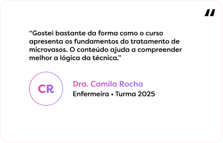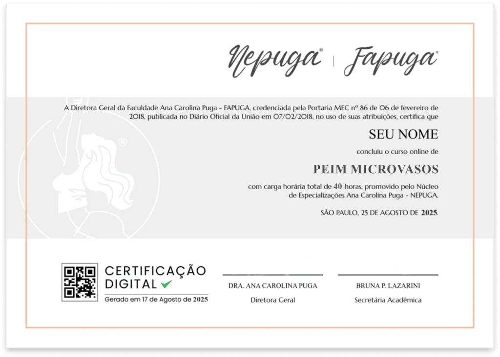 No curso online de PEIM Microvasos do Nepuga, você desenvolve uma base teórica estruturada para compreender os fundamentos da técnica, suas indicações e os cuidados envolvidos no procedimento.